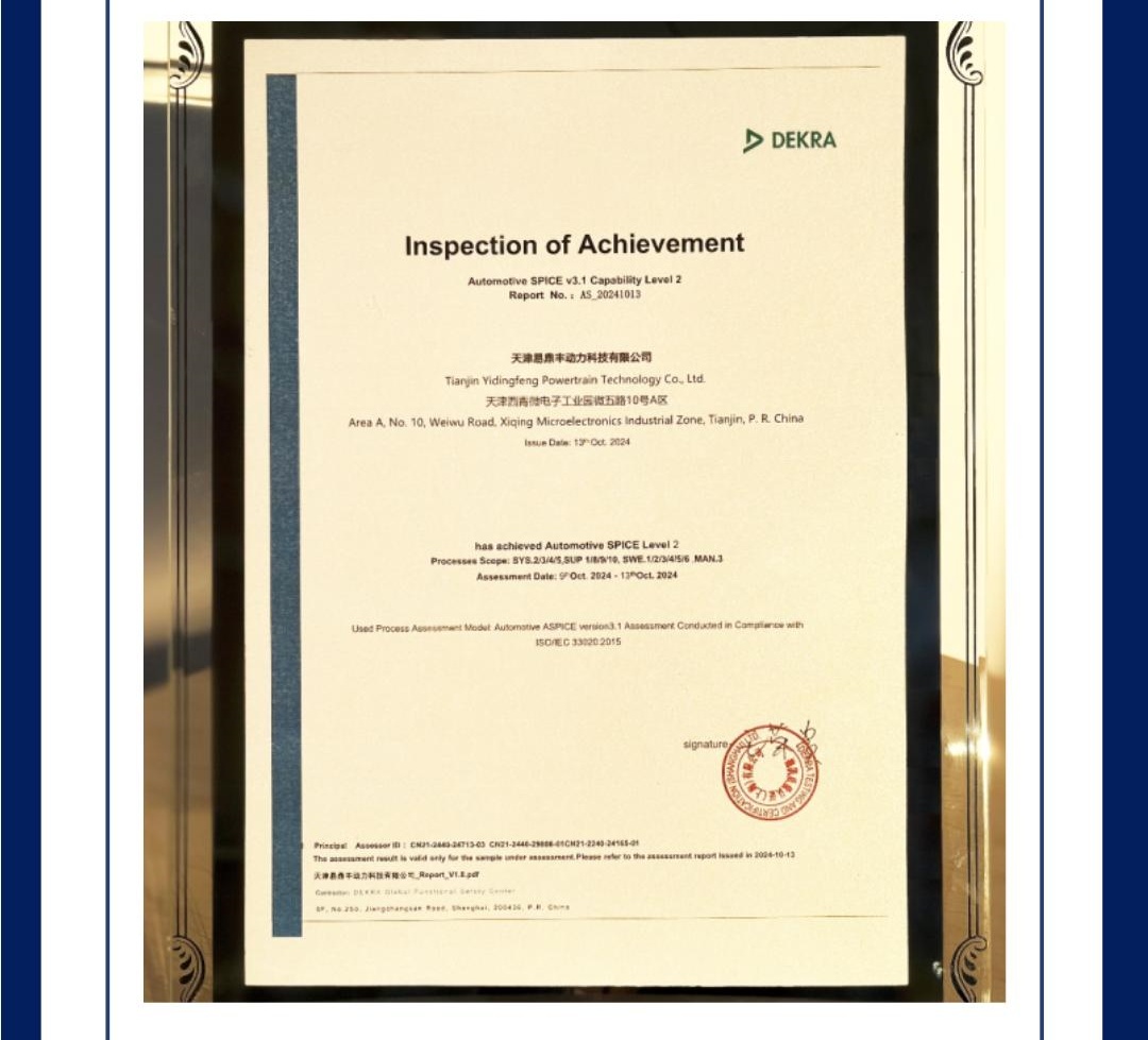 喜报丨易鼎丰通过Automotive SPICE Capability Level 2 国际认证
