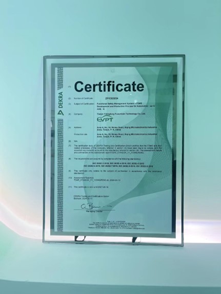 2024年7月18日,天津易鼎丰动力科技有限公司(以下简称“易鼎丰”)顺利通过ISO 26262:2018 ASIL D汽车功能安全管理体系认证,并获得由全球领先的检验检测认证机构DEKRA德凯颁发的功能安全流程认证证书。这一认证证书的获得标志着易鼎丰在汽车电子领域的安全性与可靠性方面迈出了重要的一步,进一步巩固了易鼎丰在市场上的竞争地位。