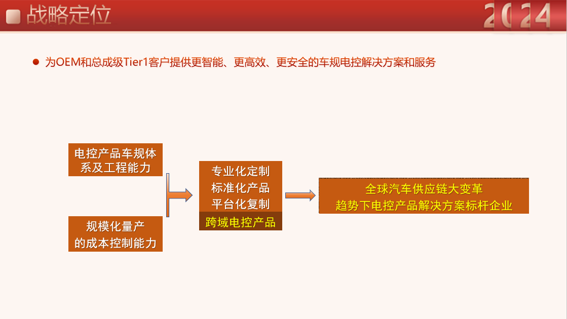 2023年10月,“易鼎丰”完成新一轮融资。引进达晨财智作为公司重要股东,为下一步的资本化发展奠定良好基础。2023年12月,天津微电子产业园200万套控制器产能的生产基地落成投产;天津研发中心和上海研发中心完成了ASPICE、功能安全和信息安全融合开发的流程能力建设,标志着“易鼎丰”已经形成了更为完善的研发、生产、营销及服务体系。面对新能源汽车行业的机遇和挑战,“易鼎丰”已经做好了准备。