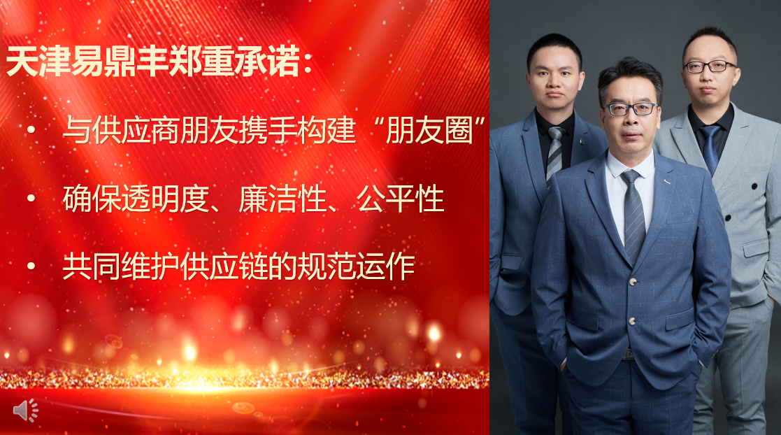 再次感谢远道而来的各位供应商伙伴,祝愿“易鼎丰”2024年供应商大会取得圆满成功,谢谢大家!