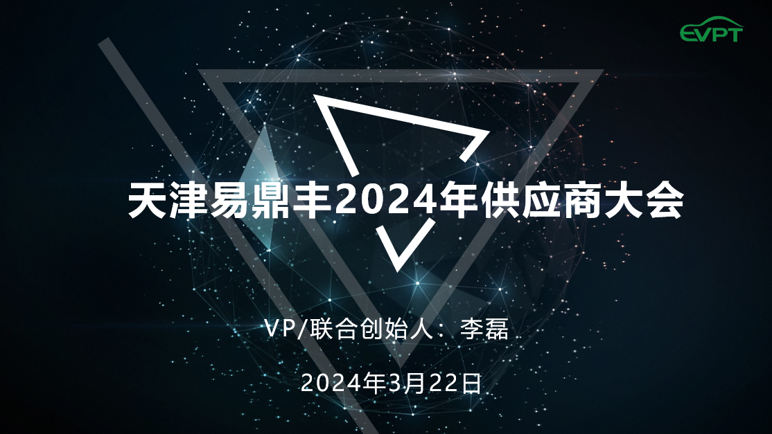 今天的大会,是我们共同交流、共谋发展的盛会,也是我们携手前行、共创辉煌的新起点。在这里,我们将分享易鼎丰的最新战略规划,倾听供应商伙伴们的宝贵意见,共同探讨行业发展的未来趋势。