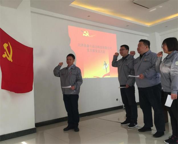 2019年3月18日上午,伴随着国歌的响起,中国共产党天津易鼎丰动力科技有限公司党支部党员大会拉开了序幕,通过《选举办法》(草案)投票选出周能辉同志为第一届党支部书记,当选后,周能辉同志进行了表态发言,表示公司党支部的成立,将更能促进党员发挥模范带头作用和基层党组织的战斗堡垒作用,对促进天津易鼎丰的健康持续发展,具有十分重要的现实意义。积极组织全体党员加强政治学习,做好党建工作,使党支部起到桥梁纽带作用。会后,党支部书记周能辉同志带领全体党员重温入党誓词,面对党旗进行了庄严宣誓。